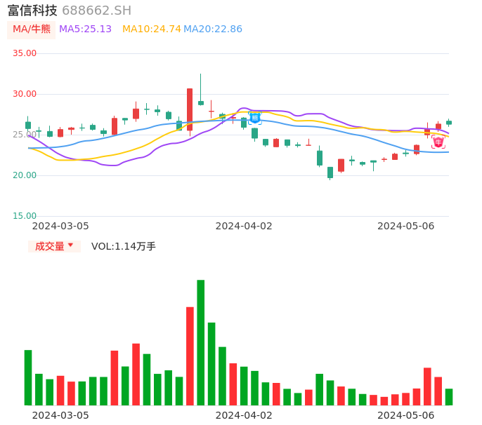 值得注意的是:2024年05月天风证券的潘暕/朱晔/王泽宇分析师,首次发布关于富信科技的研究报告,标题为:富信科技(688662):Q1业绩反转脱困 通信领域TEC有望实现快速成长。