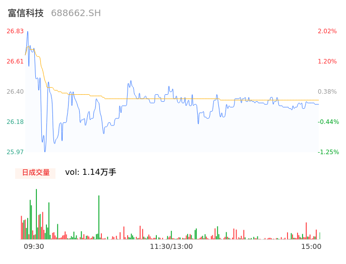 05月06日,富信科技收报26.28,股价涨幅-0.08%,成交金额3000.93万元,换手率1.29%。