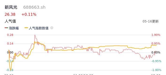 05月16日,新风光收报26.38,股价涨幅0.11%,成交金额6235.55万元,换手率1.69%。