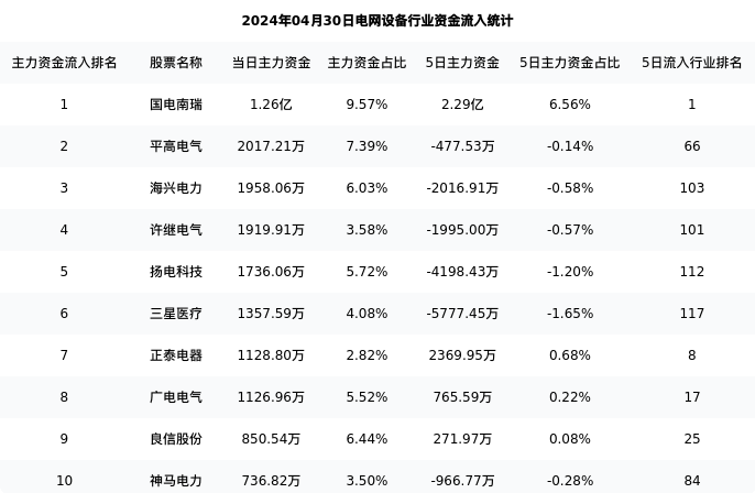 从主力资金流向来看,电网设备行业今日主力资金流入45.85亿元,在所有申万二级行业中排名:62/131。