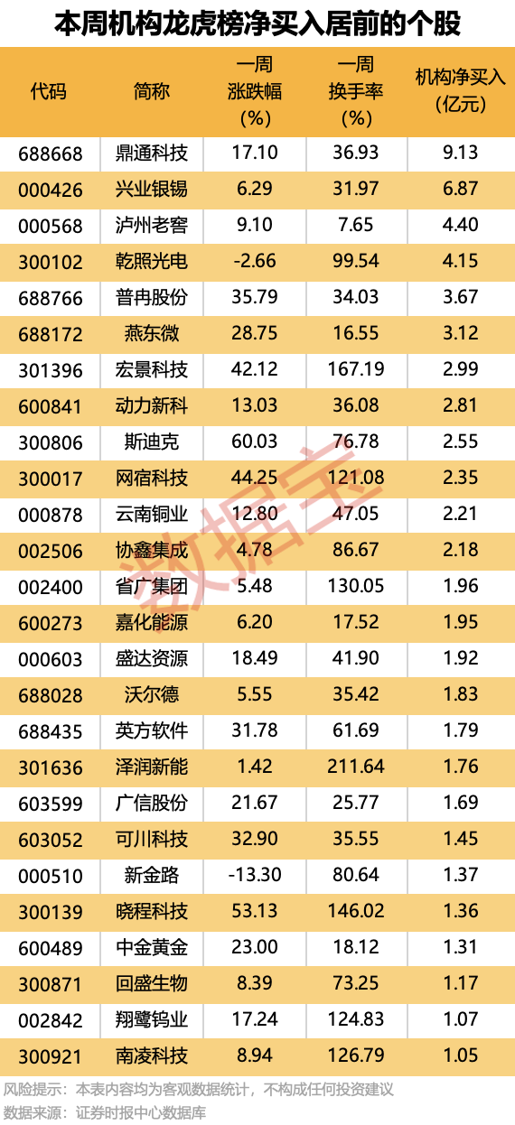 一周龙虎榜:27股获机构大手笔净买入