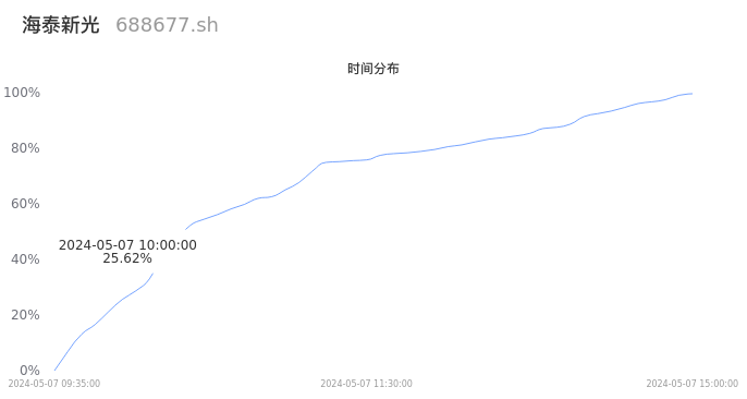 688677海泰新光2024年05月07日成交1.94万手,成交金额8987.88万元,相较昨日缩量1417手,换手率1.59%,成交清淡。