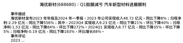 值得注意的是:2024年05月长江证券的邬博华/曹海花分析师,首次发布关于海优新材的研究报告,标题为:海优新材(688680):Q1胶膜减亏 汽车新型材料进展顺利。