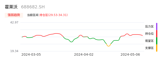 我们来看一下该股的九方特色指标强弱趋势的情况:霍莱沃自04月22日从观望区上穿到持仓区。股价近期在多头区域回调整理。后续重点关注多空分界点的争夺:29.53元。如未能有效站稳则可能重新回到空头行情。
