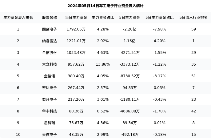 从主力资金流向来看,军工电子行业今日主力资金流入22.95亿元,在所有申万二级行业中排名:108/131。