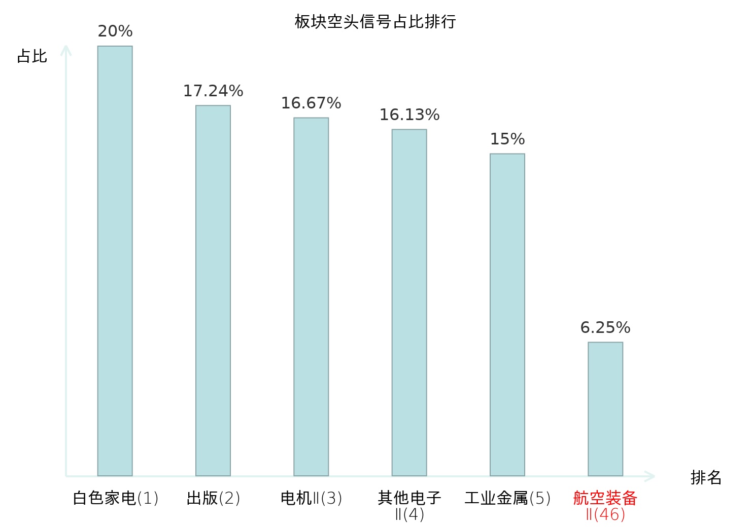 全市场所有行业板块中主力空头信号占比排名中,白色家电板块位居第一。其他电子Ⅱ板块名次提升最快,较昨日上升123位。