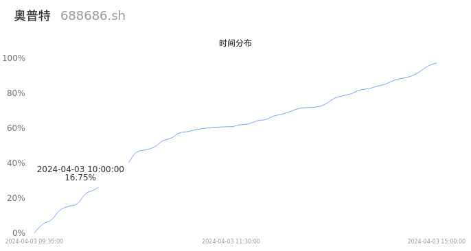 688686奥普特2024年04月03日成交1.26万手,成交金额1.13亿元,相较昨日缩量3868手,换手率1.03%,成交清淡。