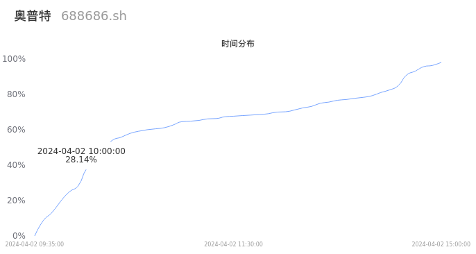 根据成交分布分析,该股票当天缩量成交,成交清淡。时间上看,早盘前半小时成交量占据当天总成交量的28.14%;价格上看,成交呈现左偏峰。成交分布分析主要研究股票成交的分布特性,不具有预测功能,请知悉。