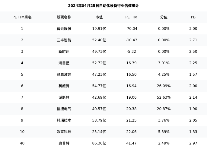 从估值角度看:奥普特最新市盈率PETTM为41.47,在行业内排名37/80,处于2.49分位。