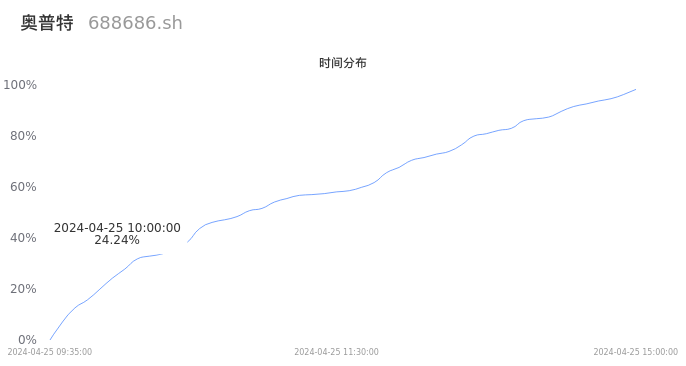 688686奥普特2024年04月25日成交1.11万手,成交金额7728.42万元,相较昨日缩量3379手,换手率0.91%,成交清淡。