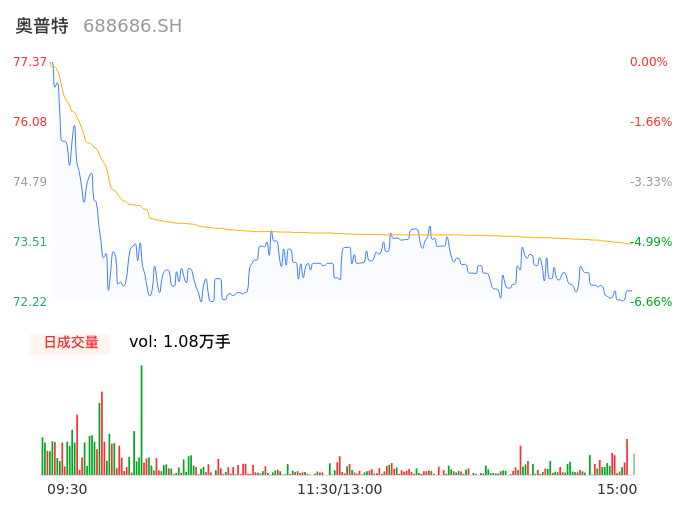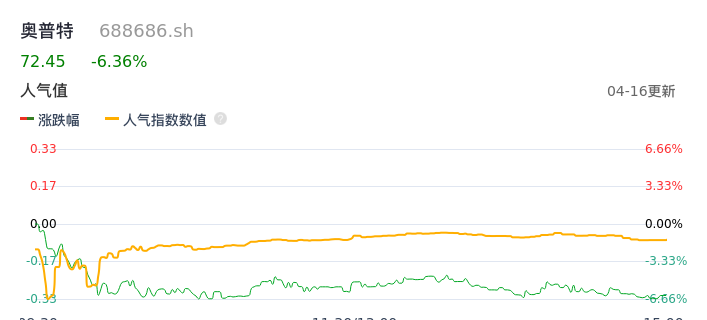 04月16日,奥普特收报72.45,股价涨幅-6.36%,成交金额7913.55万元,换手率0.88%。