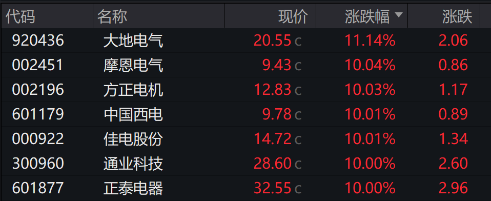电网设备股反复走强,特变电工触及涨停,续创历史新高,伊戈尔2连板,中国西电、正泰电器、保变电气、顺钠股份涨停。