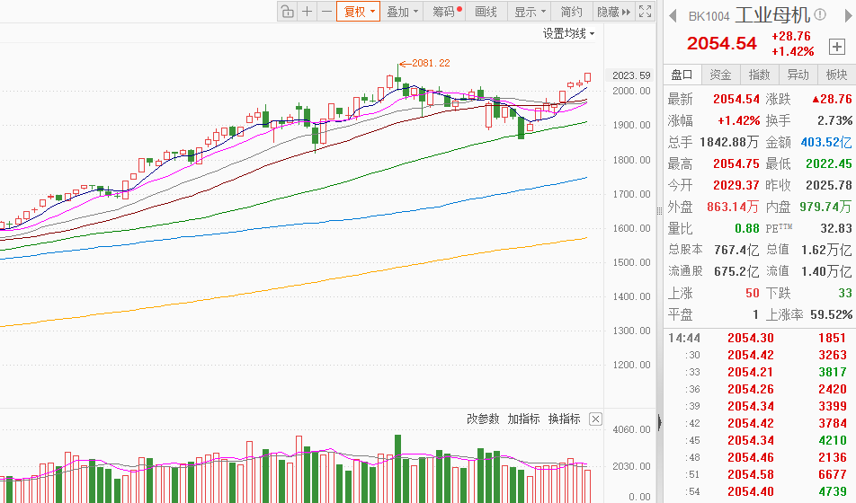 事件驱动:工业母机概念异动拉升,华东数控直线涨停,华中数控、大族数控、恒进感应、科德数控、纽威数控等跟涨。消息面上,《中共中央关于制定国民经济和社会发展第十五个五年规划的建议》10月28日公布,提出全链条推动工业母机等重点领域关键核心技术攻关取得决定性突破。