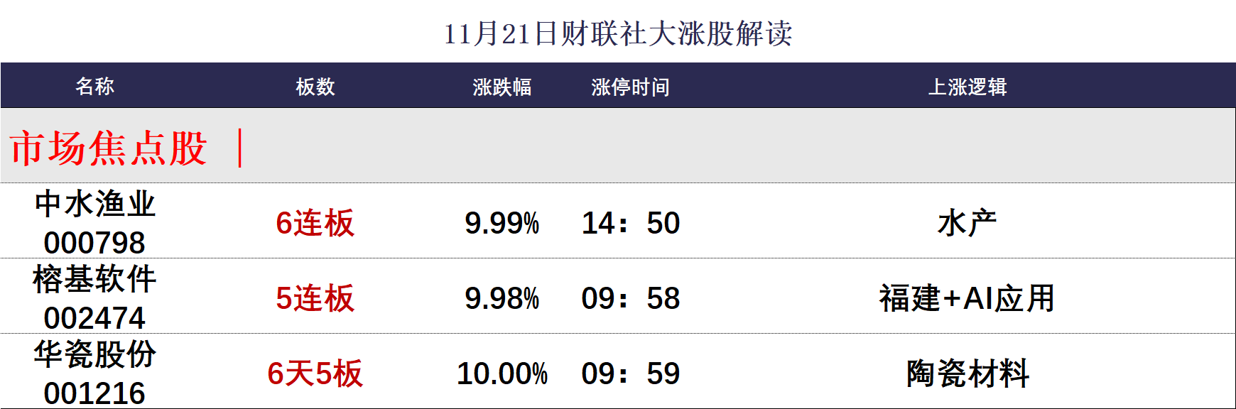财联社11月21日讯,今日28股涨停,20股炸板,封板率为58%,中水渔业6连板,榕基软件5连板,国风新材、深中华A、梦天家居3连板,华瓷股份6天5板,洛凯股份5天3板。市场全天震荡调整,沪指跌超2%,创业板指跌超4%。沪深两市成交额1.97万亿,较上一个交易日放量2575亿。盘面上个股普跌,全市场近5100只个股下跌。板块方面,中船系、AI应用等板块涨幅居前,电池、硅能源、锂矿等板块跌幅居前。截至收盘,沪指跌2.45%,深成指跌3.41%,创业板指跌4.02%。