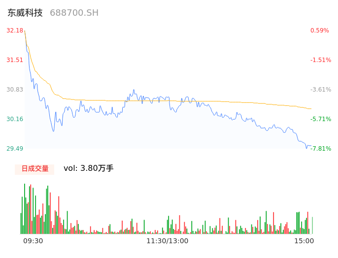 04月16日,东威科技收报29.55,股价涨幅-7.63%,成交金额1.16亿元,换手率2.59%。