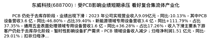 值得注意的是:2024年04月东吴证券的周尔双/李文意分析师,首次发布关于东威科技的研究报告,标题为:东威科技(688700):受PCB影响业绩短期承压 看好复合集流体产业化。
