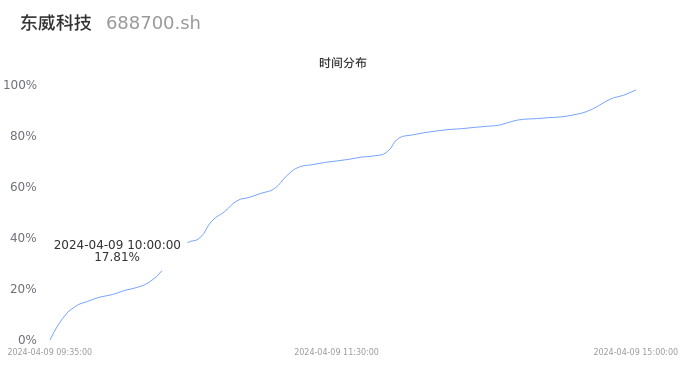根据成交分布分析,该股票当天放量成交,成交清淡。时间上看,早盘前半小时成交量占据当天总成交量的17.81%;价格上看,成交呈现右偏峰。成交分布分析主要研究股票成交的分布特性,不具有预测功能,请知悉。