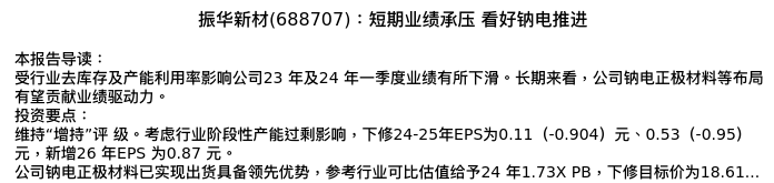 值得注意的是:2024年05月国泰君安的庞钧文/牟俊宇分析师,首次发布关于振华新材的研究报告,标题为:振华新材(688707):短期业绩承压 看好钠电推进。