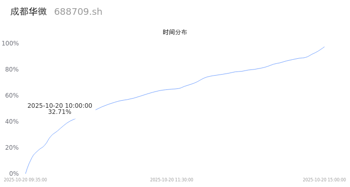 688709成都华微2025年10月20日成交6.24万手,成交金额2.87亿,相较昨日缩量5.41万手,换手率2.86%,成交清淡。
