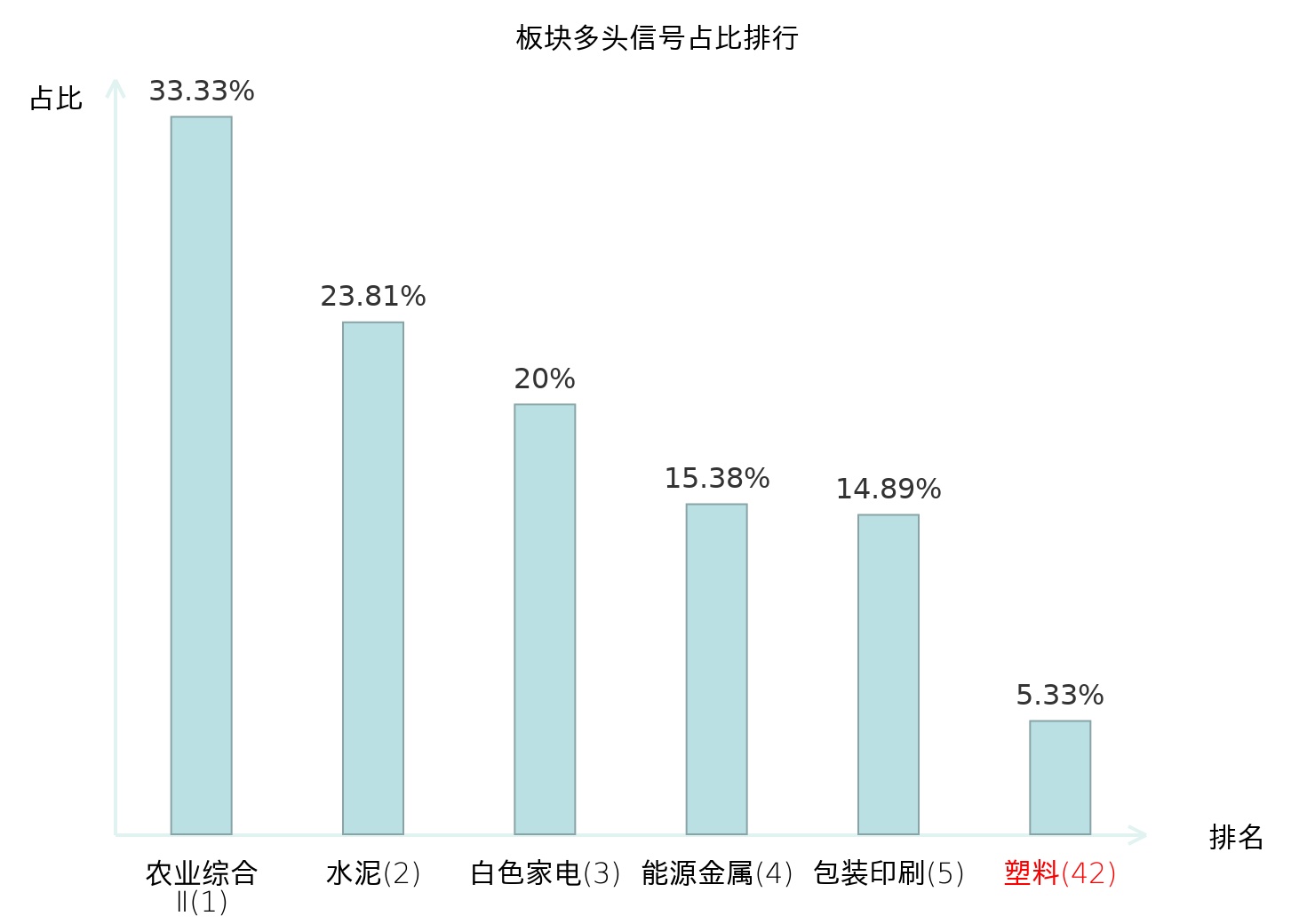 从主力宝信号数据分析,中研股份所属的塑料板块中共4只股票发出主力多头信号,主力多头信号占比在全行业中排名第42位,较昨日上升8位。排名的提高表明主力当日买入意愿增强。全市场所有行业板块中,农业综合Ⅱ板块的主力多头信号占比最高,位居第一;农业综合Ⅱ板块名次提升最快,较昨日上升127位。这些变动反映了主力资金在不同行业间的偏好调整,为投资者理解市场动态和趋势提供了重要参考。