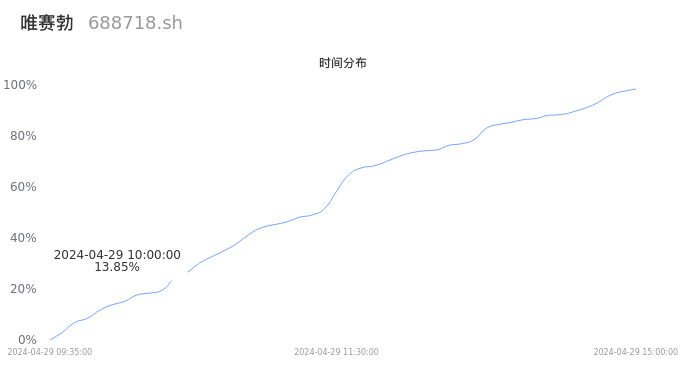688718唯赛勃2024年04月29日成交1.80万手,成交金额1997.59万元,相较昨日放量7733手,换手率3.18%,成交清淡。