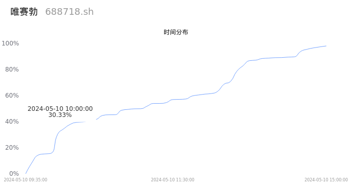 根据成交分布分析,该股票当天放量成交,成交清淡。时间上看,早盘前半小时成交量占据当天总成交量的30.33%;价格上看,成交呈现左偏峰。成交分布分析主要研究股票成交的分布特性,不具有预测功能,请知悉。