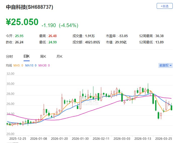 A股异动 | 中自科技跌逾4% 2025年净亏损同比扩大