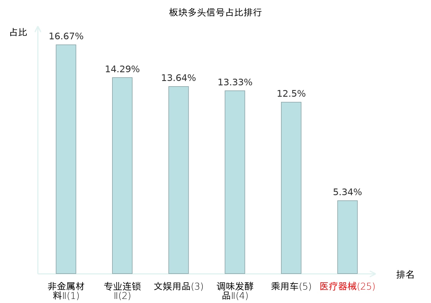 全市场所有行业板块中主力多头信号占比排名中,非金属材料Ⅱ板块位居第一。乘用车板块名次提升最快,较昨日上升115位。