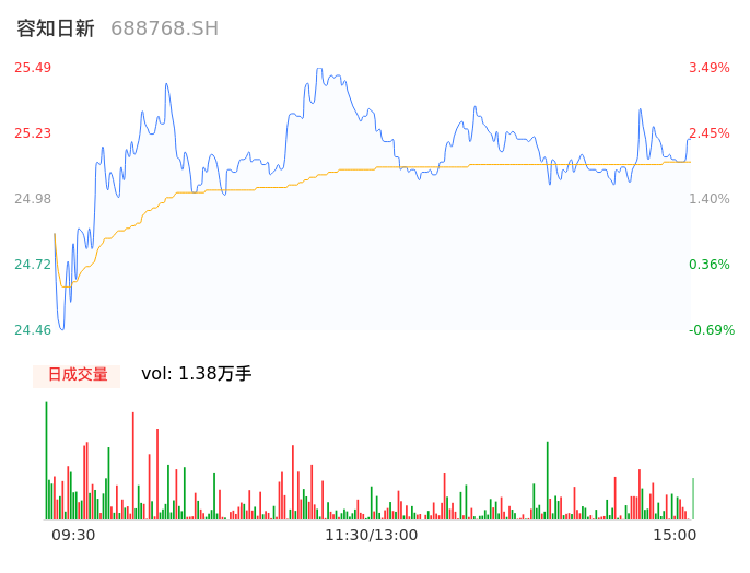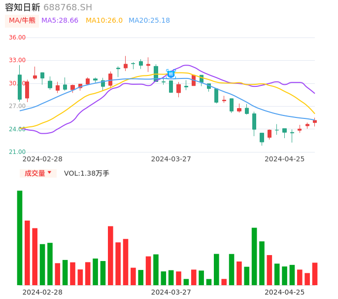 04月25日,容知日新收报25.14,股价涨幅2.07%,成交金额3457.60万元,换手率2.77%。