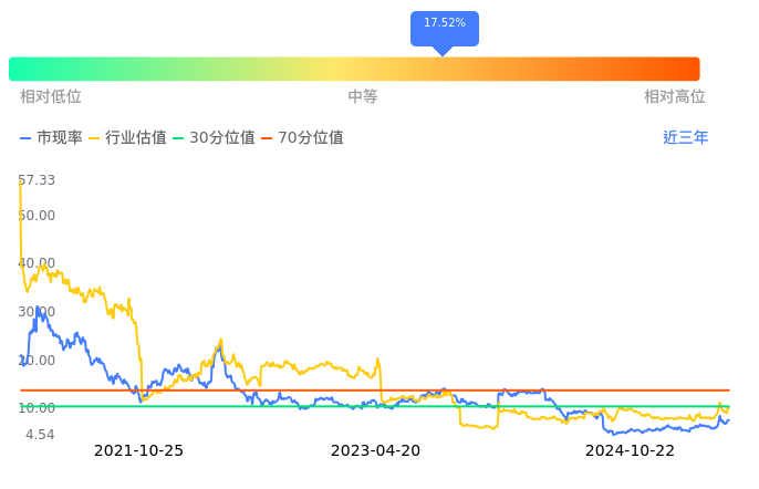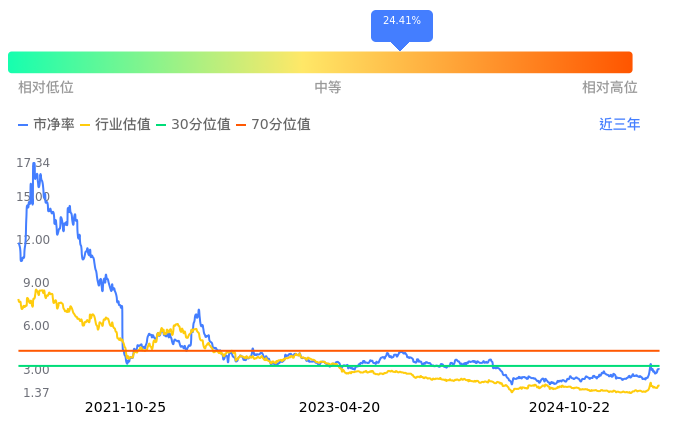 2024年10月22日,珠海冠宇下跌0.12%收于17.21,今日成交金额2.91亿。下文将从市盈率PETTM、市净率PB、市现率3个角度去分析公司估值情况。