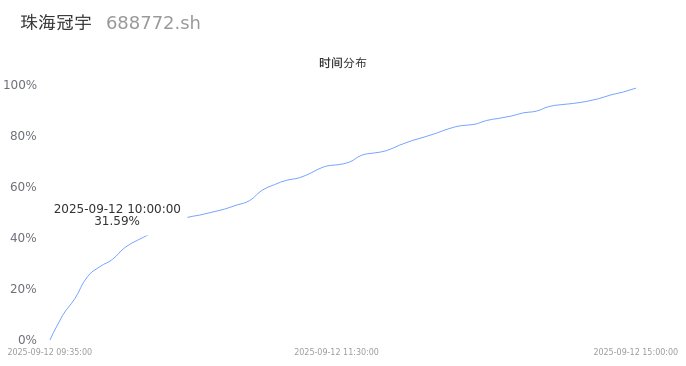 688772珠海冠宇2025年09月12日成交33.46万手,成交金额7.46亿,相较昨日缩量11.42万手,换手率2.96%,成交清淡。