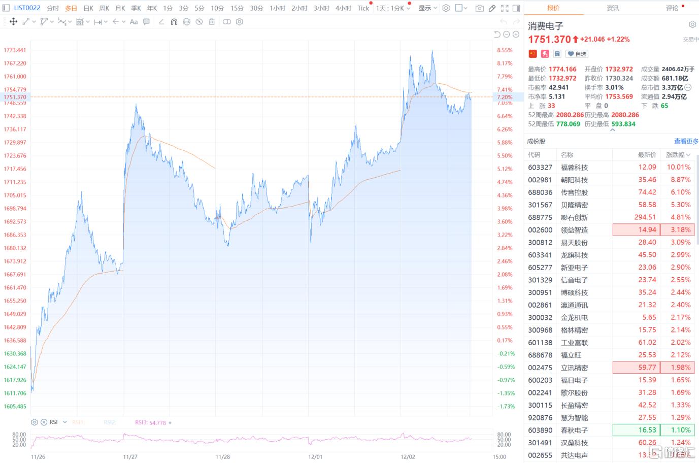 其中,通宇通讯、道明光学4连板,福蓉科技2连板,传音控股、影石创新、工业富联、立讯精密、歌尔股份等走强。