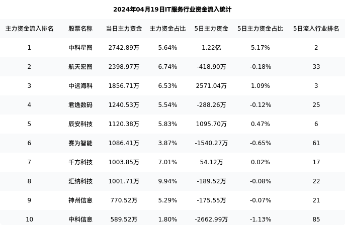 从主力资金流向来看,IT服务行业今日主力资金流入42.68亿元,在所有申万二级行业中排名:8/131。