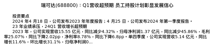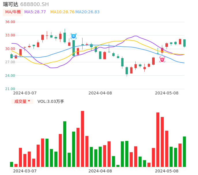 值得注意的是:2024年05月浙商证券的张建民分析师,首次发布关于瑞可达的研究报告,标题为:瑞可达(688800):Q1营收超预期 员工持股计划彰显发展信心。