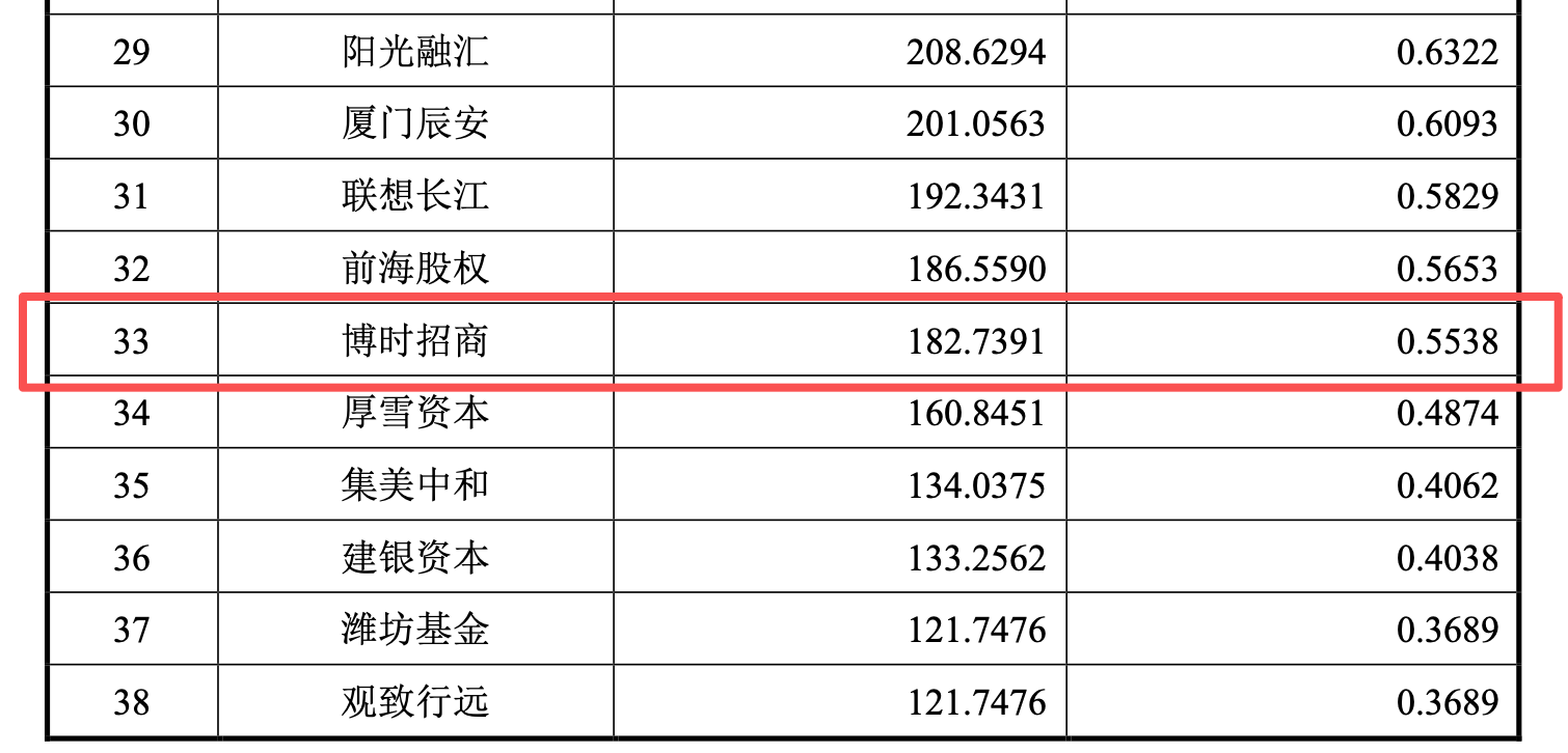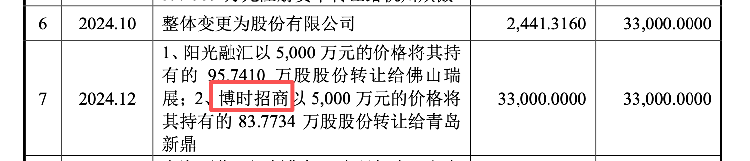 2024年10月,摩尔有限启动股改,以截至2024年5月31日经审计的39072.98万元净资产为基础,折股为33000万元股本,博时招商的持股数量变更为266.5125万股,持股比例调整为0.8076%。