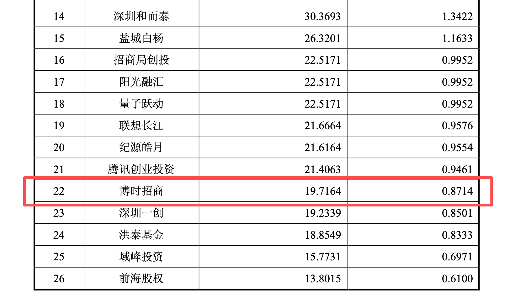 报告期初,摩尔有限注册资本为2262.5846万元,博时招商出资19.7164万元,获得了0.8714%的持股比例,招商证券实际控制人招商局集团下属的招商局创投还直接持有摩尔线程0.7609%的股份。