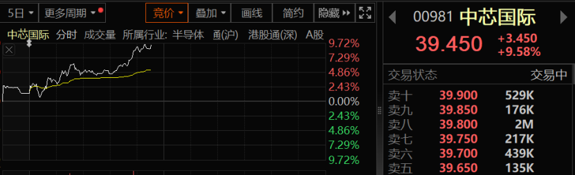 港股中芯国际突然大爆发,股价一度飙涨超9%,A股大涨近6%。