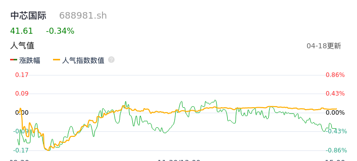 04月18日,中芯国际收报41.61,股价涨幅-0.34%,成交金额6.91亿元,换手率0.84%。