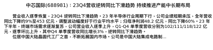 值得注意的是:2024年04月东方证券的蒯剑/韩潇锐/杨宇轩分析师,首次发布关于中芯国际的研究报告,标题为:中芯国际(688981):23Q4营收逆转同比下滑趋势 持续推进产能中长期布局。