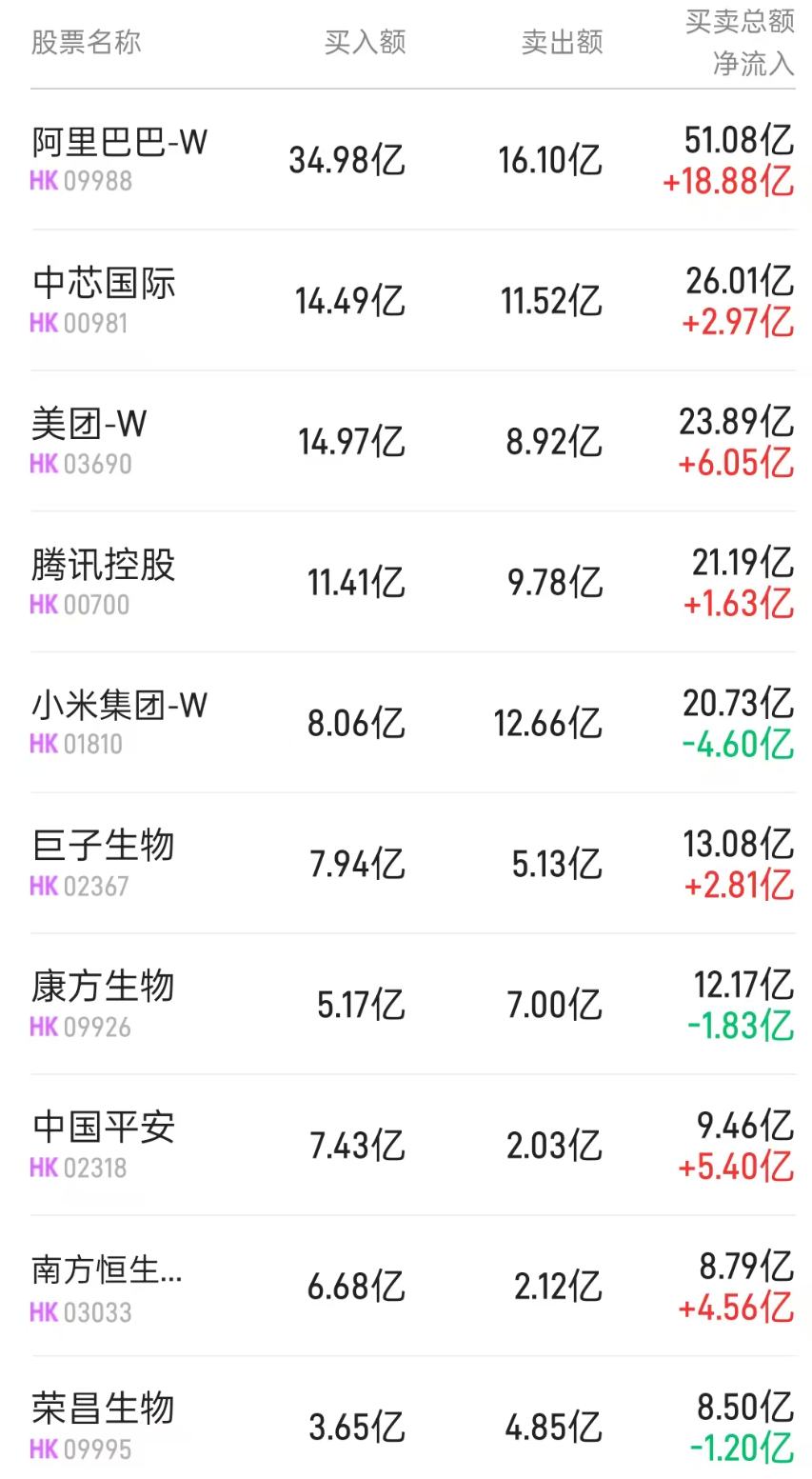 阿里巴巴-W(09988)再获净买入42.33亿港元。消息面上,据蓝鲸新闻报道,阿里明日将在杭州西溪园区举行业务发布会,因内容处于保密状态,成引发外界广泛关注。对此,记者从可靠信源获悉,明日业务发布会的确与高德相关,且将发布一个跟高德有关的产品。报道表示,有知情人士透露,该发布会与“口碑网”及自营团购业务无关。
