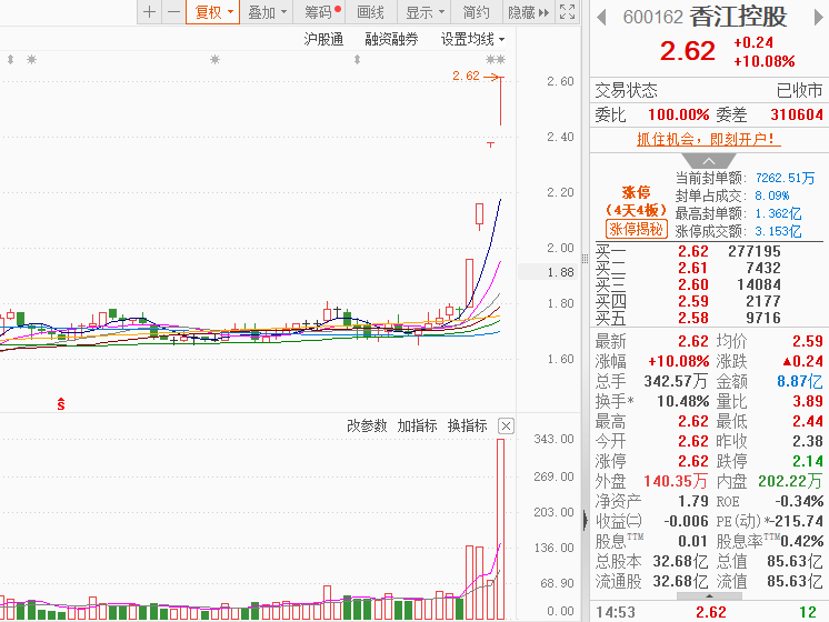 市场情绪:全市场超2500只个股上涨。今日市场情绪持续回暖,今日共69股涨停,连板股总数15只,23股封板未遂,封板率为75%(不含ST股、退市股)。焦点股方面,机器人概念股再度爆发,首开股份11天10板、上海建工4连板;低价股持续活跃,山子高科4连板、香江控股4连板。