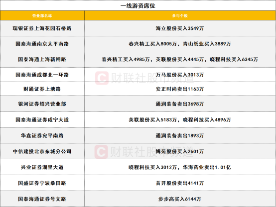 一线游资活跃度整体一般,晓程科技获三家一线游资席位合计买入超1.4亿;英联股份获两家一线游资席位合计买入超9628万;春兴精工获两家一线游资席位合计买入超1.2亿。