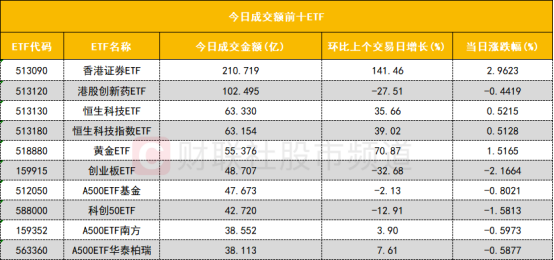 从成交额前十的ETF来看,香港证券ETF(513090)成交额位居首位,港股创新药ETF(513120)成交额位居次席。