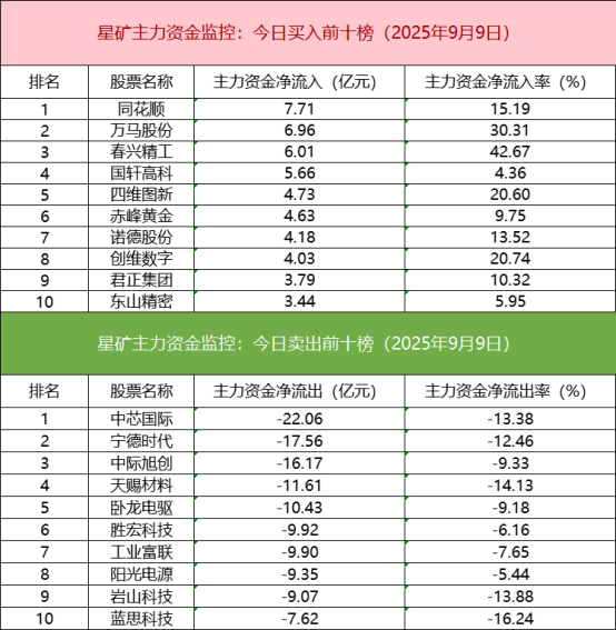 从个股主力资金监控数据来看,主力资金净流入前十的个股所属板块较为杂乱,同花顺净流入居首。