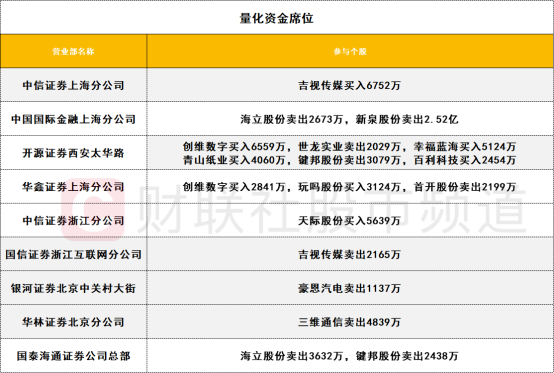 量化资金活跃度一般,海立股份遭两家量化席位卖出6305万。