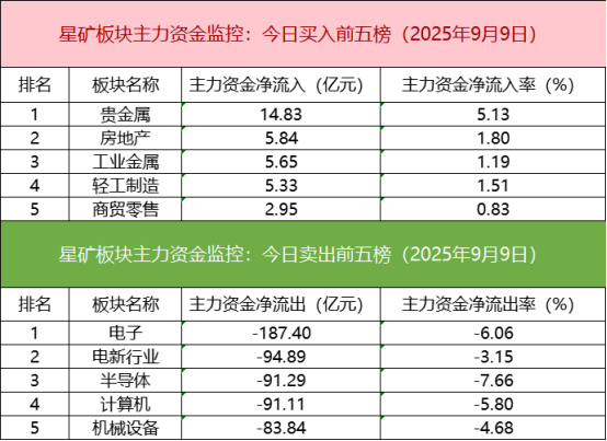 从主力板块资金监控数据来看,贵金属板块主力资金净流入居首。