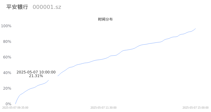 000001平安银行2025年05月07日成交112.63万手,成交金额12.40亿,相较昨日放量27.16万手,换手率0.58%,成交清淡。