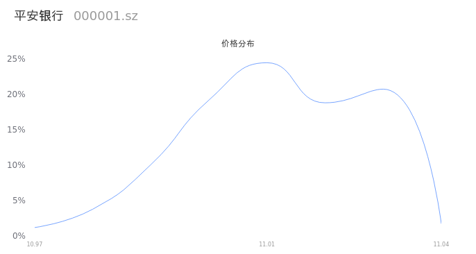 然后我们来看下当日成交的价格分布。经过分析发现,该股票当日成交价格波动低于10个最小波动价位,由于可以参考的样本量非常少,价格分布分析的结果不具有指导意义,下图仅供参考。