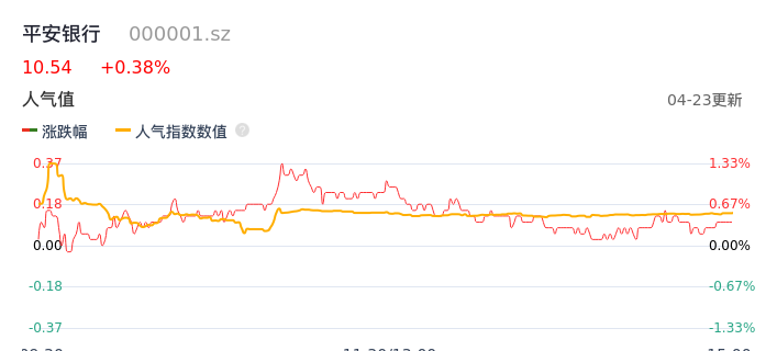 04月23日,平安银行收报10.54,股价涨幅0.38%,成交金额13.09亿元,换手率0.64%。
