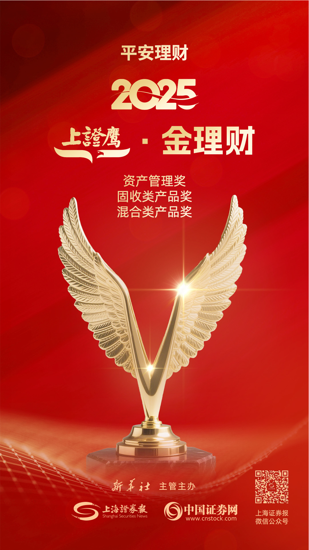 12月12日,2025年上证·金理财金融高质量发展大会暨“上证鹰·金理财”评选颁奖典礼在上海举行。平安理财再度荣获“2025年度资产管理奖”,旗下产品启元增强一年定开5号荣获“年度固收类产品奖”,智享全周期180天持有1号荣获“年度混合类产品奖”,卓越的投研能力与资管实力再获认可。